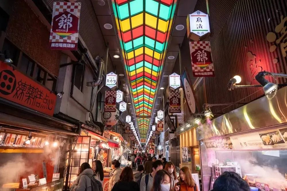 Le marché Nishiki, souvent appelé la cuisine de Kyoto, est une arcade couverte et étroite qui traverse le centre de la ville, bordée de vendeurs proposant légumes marinés, tofu, poissons frais, douceurs et spécialités locales. C’est l’un des meilleurs endroits de Kyoto pour manger et flâner au niveau de la rue, loin des temples et des sanctuaires. Le quartier du centre-ville environnant, incluant Kawaramachi et Shijo, offre la concentration la plus accessible de restaurants, cafés et boutiques de la ville.