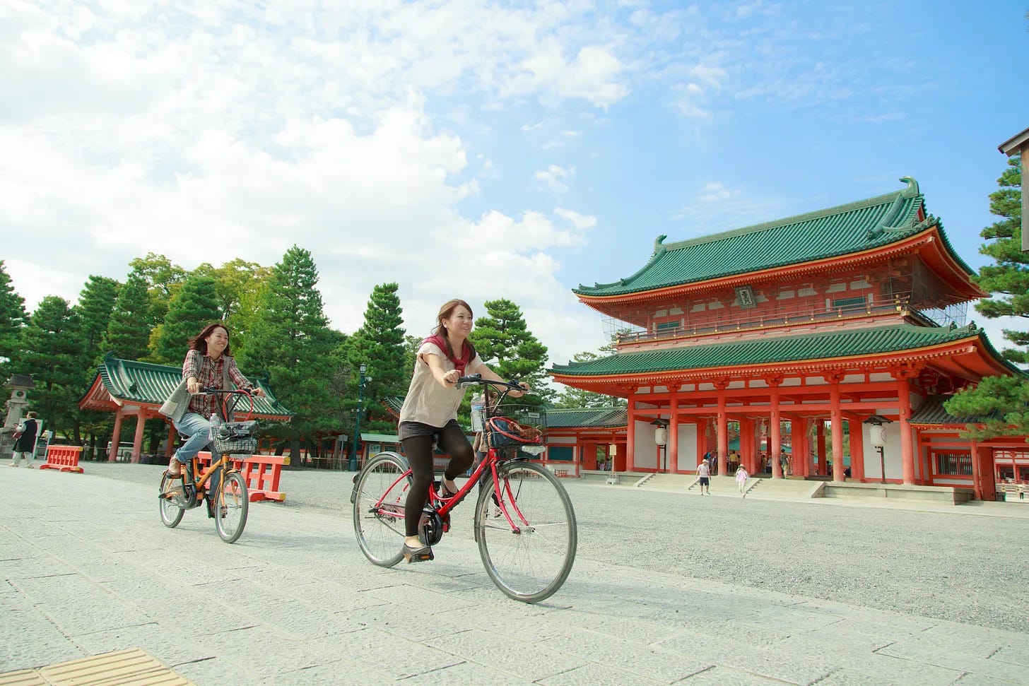 er à vélo entre des quartiers qui nécessiteraient autrement un bus ou un taxi permet une expérience plus fluide et spontanée de la ville, particulièrement dans des secteurs comme les chemins longeant les canaux près de Fushimi et les rues résidentielles plus tranquilles au nord du centre-ville.