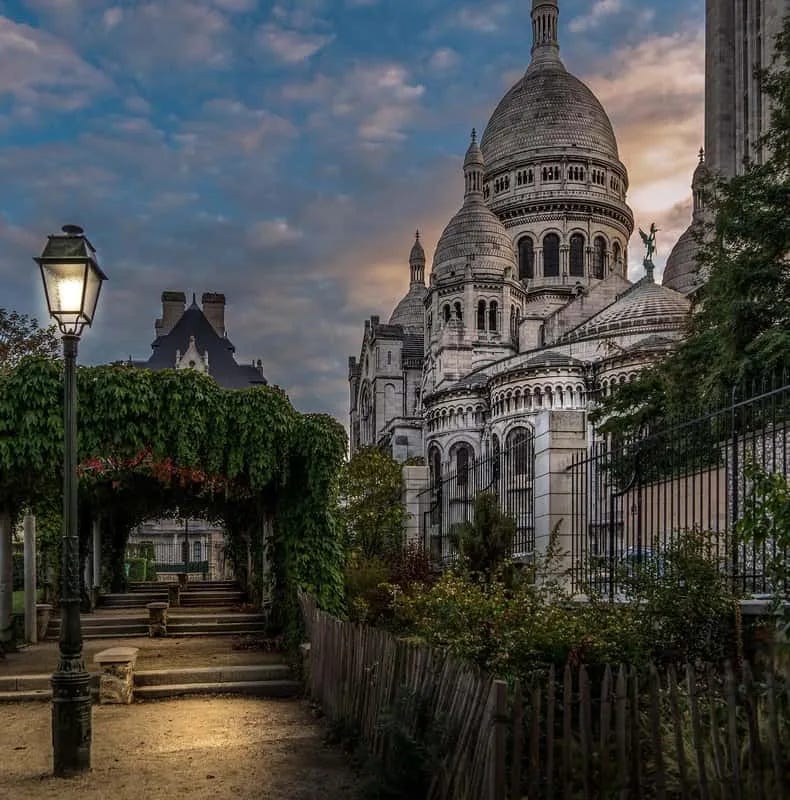 Montmartre tôt le matin. Sacré-Cœur avant 9h, puis les petites rues et le vignoble.