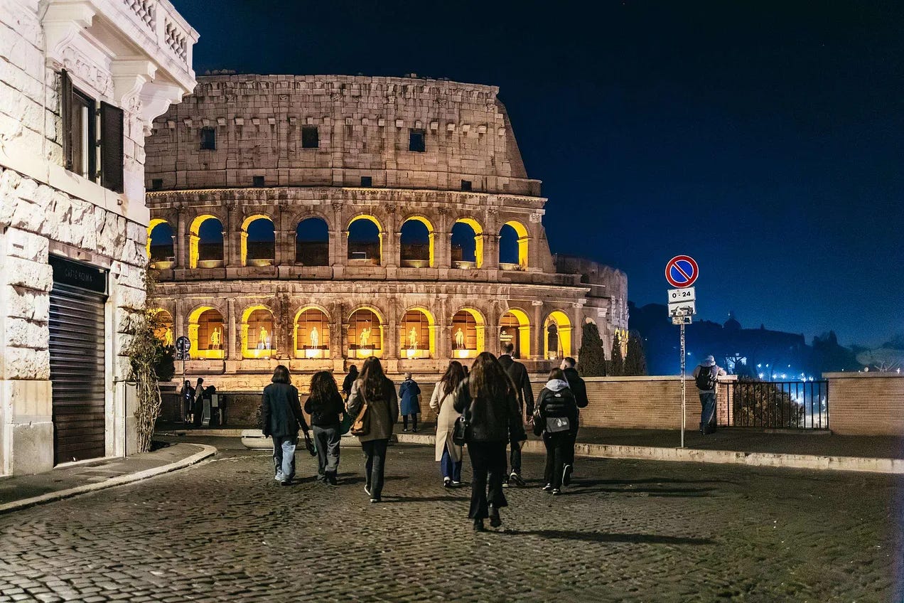 Colisée (premier créneau, réservez à l’avance). Forum Romain et Palatin.