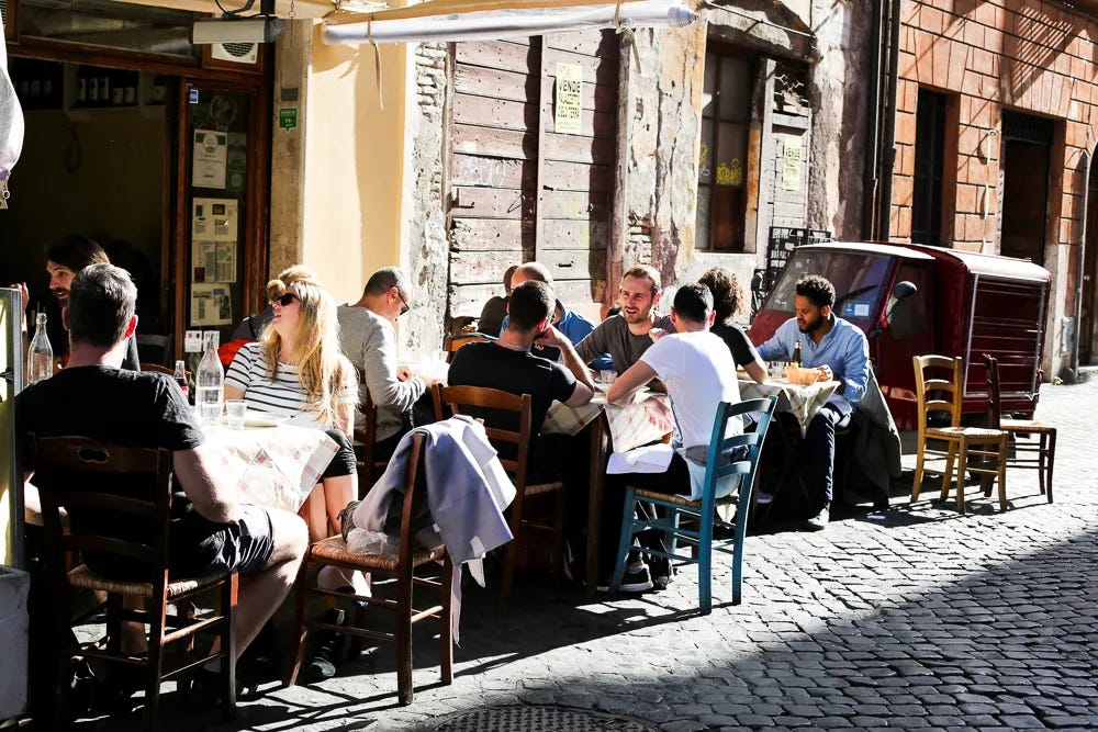 Dîner à Trastevere. Restez dans le quartier pour l’apéritif et l’atmosphère du soir.